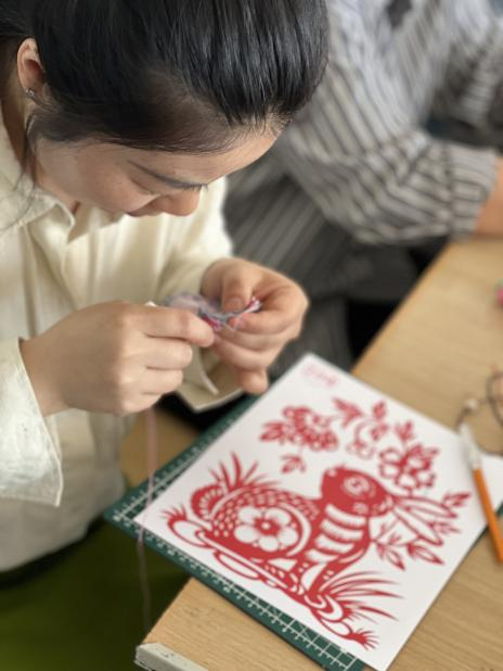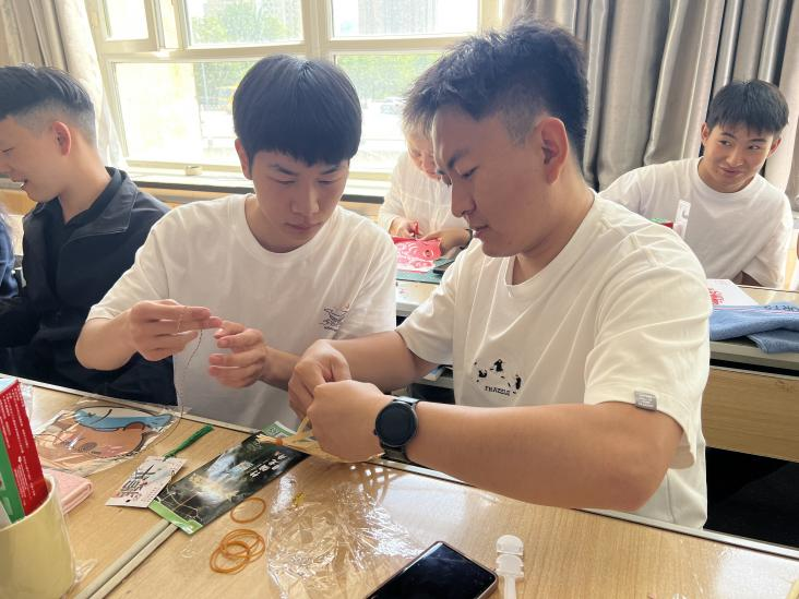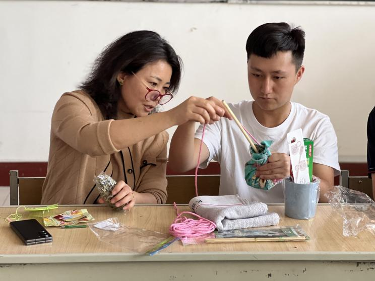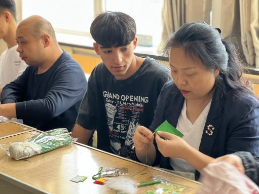 活动现场热闹非凡,手工制作香囊、绘制团扇、剪纸、投壶等传统技艺体验活动受到了结对师生的喜爱。大家在制作香囊的过程中,将艾草等香料精心装入小小的香囊,一针一线缝制出精美的图案,因为是针线活,从小没接触过针线活的同学们在老师们的引导下一针一线的完成了自己的小香囊;在绘制团扇时,师生们充分发挥想象力,用画笔在团扇上勾勒出一幅幅美丽的画面;剪纸环节更是妙趣横生,一张张红纸在师生手中变成了栩栩如生的图案;投壶游戏则让现场充满了欢声笑语,大家在投壶的过程中不仅锻炼了身体协调能力,还增进了彼此之间的友谊。