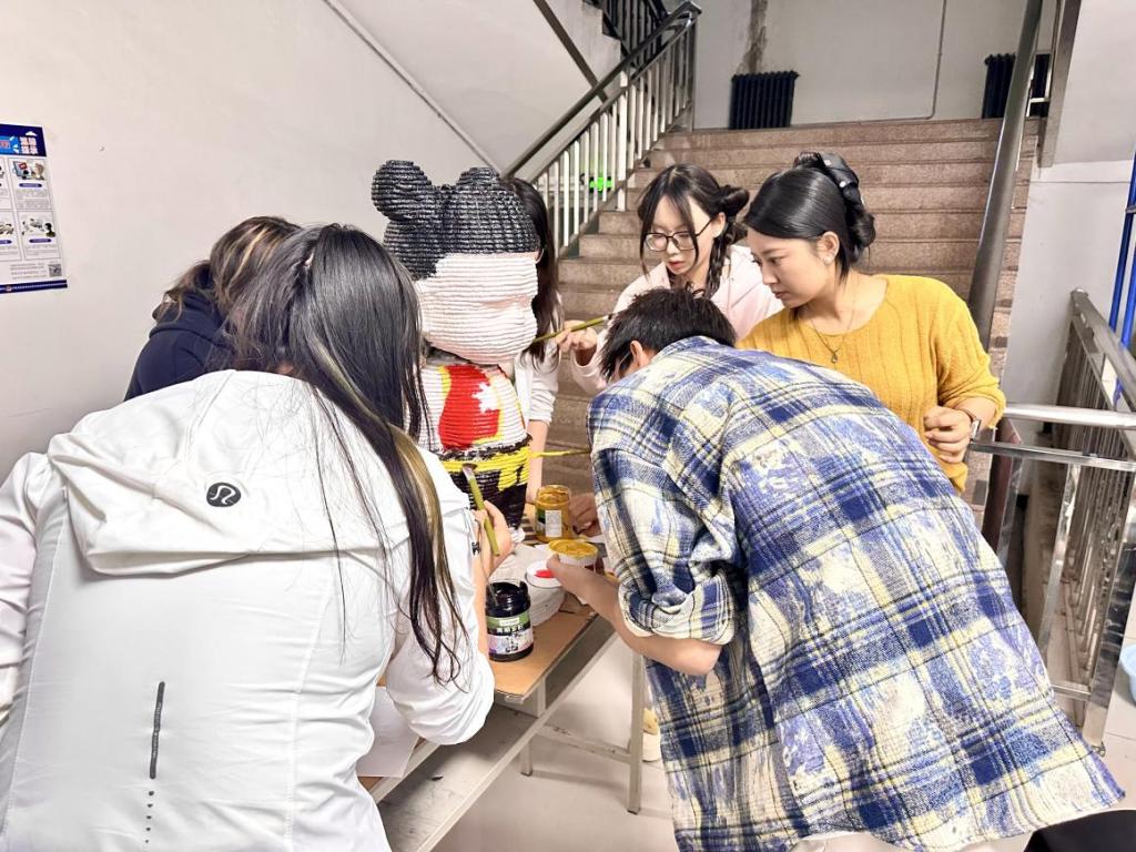 本次活动开创性地采用了“技术+艺术”双学院联合培养模式,建筑工程学院负责前期3D打印制作,建筑规划与设计学院主导后期艺术彩绘,两个学院的师生团队密切配合,历时一周完成创作。