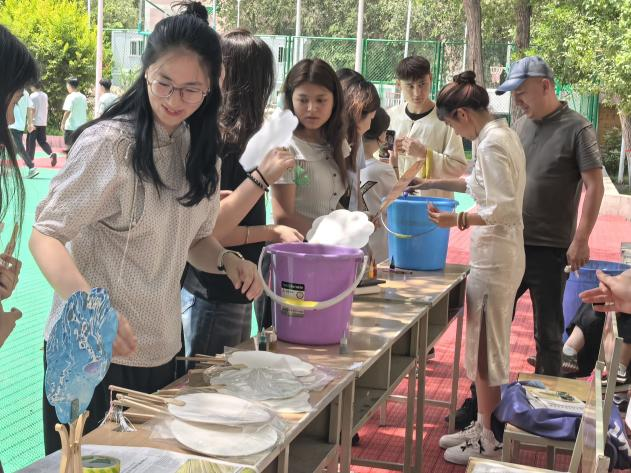 6月26日正午,阳光炽烈如火,建筑规划与设计学院在校园操场之上,铺开了一场名为“漆彩扇韵,匠心传承”的漆扇制作盛宴。师生们齐聚于此,让古老漆艺在当代青年的指尖重新焕发生命光彩,也为夏日校园涂抹上独特而深沉的色彩。