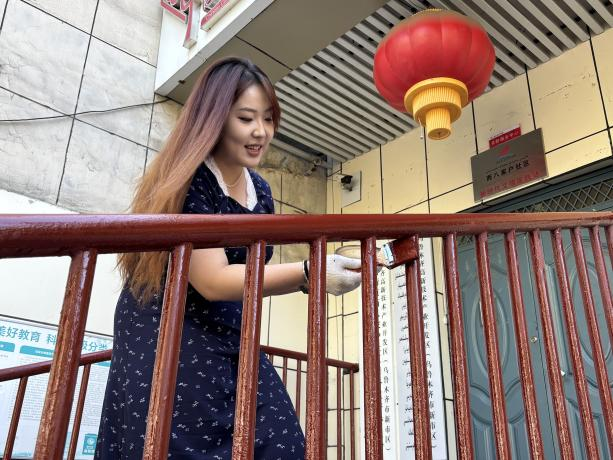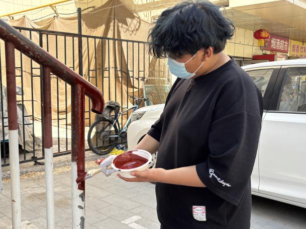 同学们一到社区,便迅速投入到紧张而有序的工作中。他们细心地对社区门口的围栏进行了全面清理,一丝不苟地拂去灰尘,确保围栏表面光洁如新,为接下来的粉刷任务奠定了坚实基础。