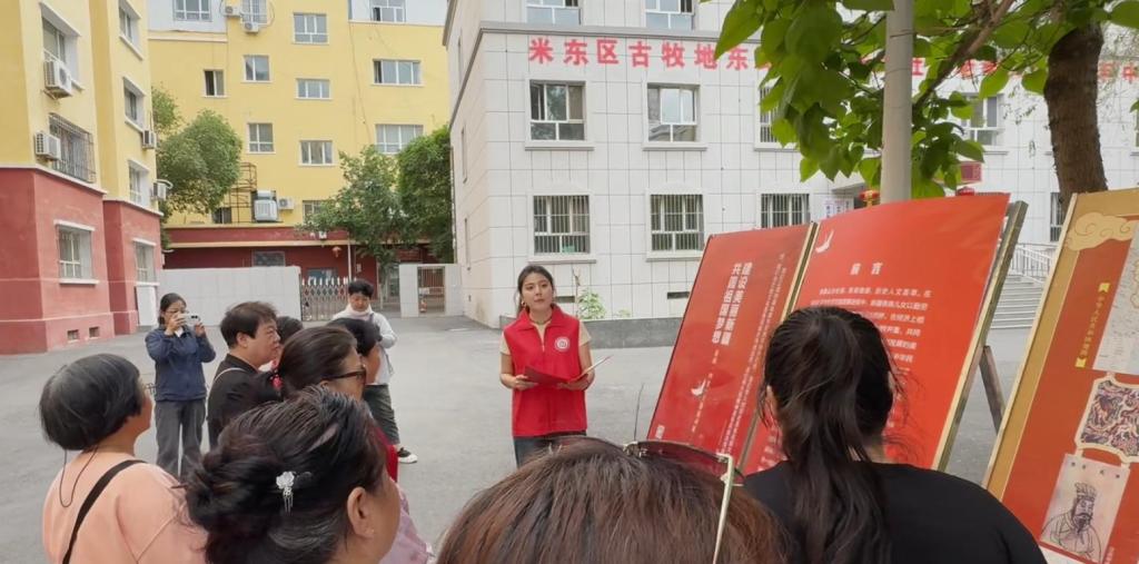 建筑规划与设计学院“微光”社团携“建设美丽新疆 共圆祖国梦想”主题流动展走进祥和社区,为社区居民带来了一场生动的历史文化盛宴。
